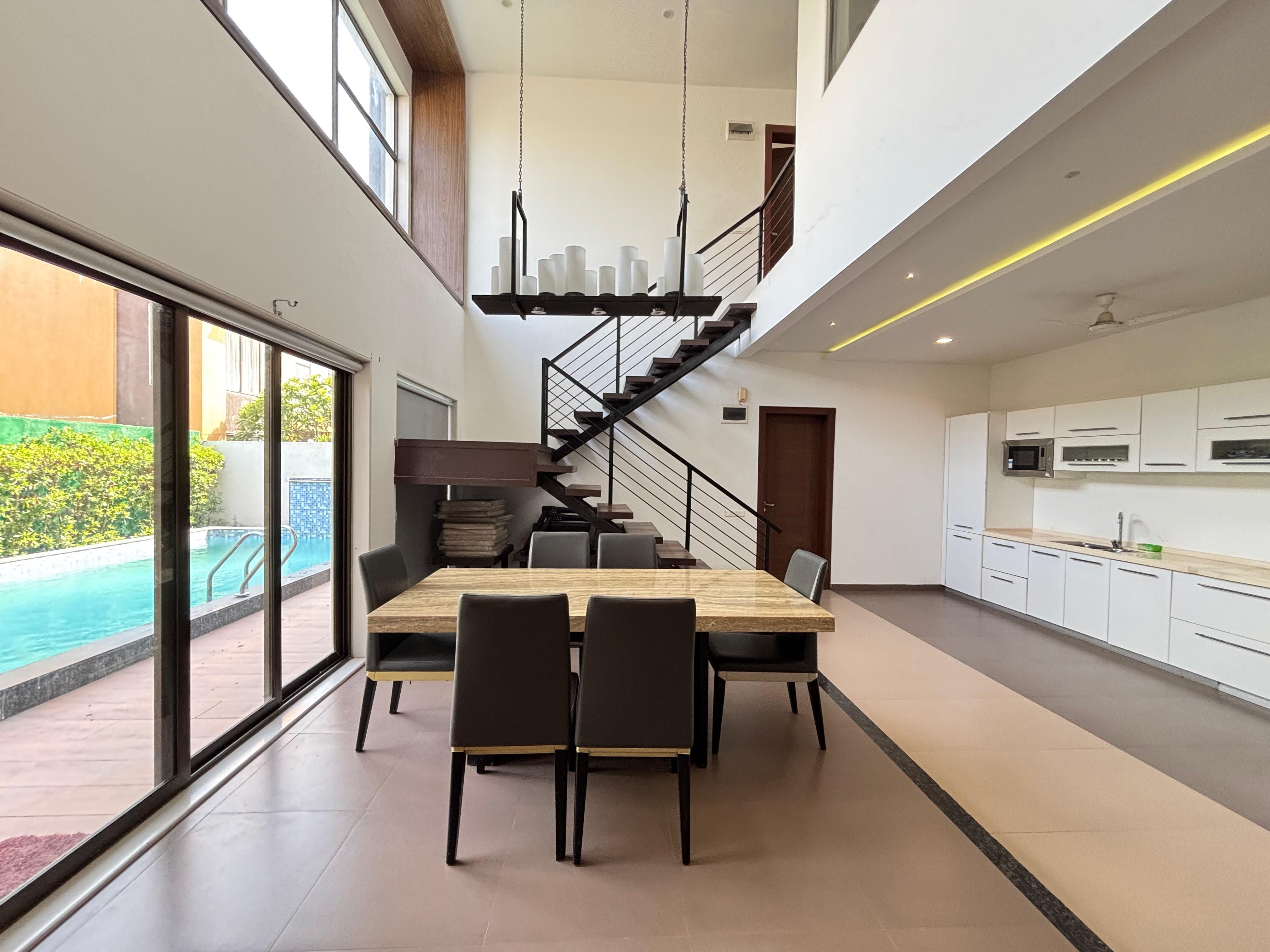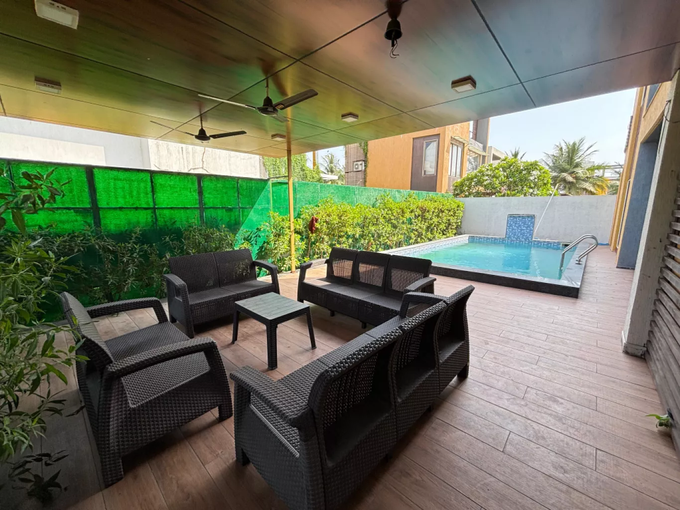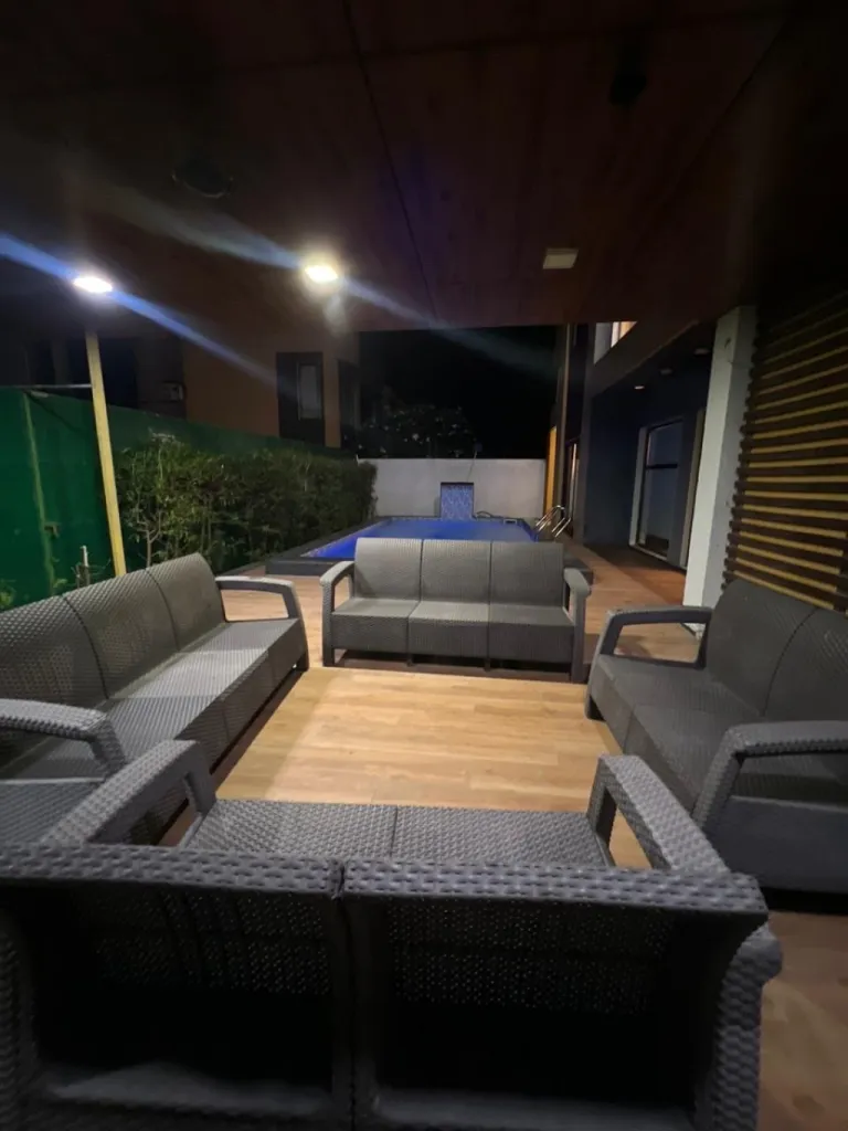Located right at the beach. 🏖️🌊 24 hours care taker for assistance.🧑🍳 features a newly renovated private swimming pool with fountain, massage jets and underwater lights, plus a gazebo by the pool. 🏊♀️🤿 The spacious 3 BHK villa has AC in all rooms and 6 extra mattresses alongside huge private lawn.🏡🛌 no distrubance from police or other authorities. ⛔️ just a 40 minutes drive from surat.🚙 clubhouse Offers Private theatre & disco theque, casino styled card room, Gym, Pocket pool, TT, Carrom. 🎥🃏🏋️